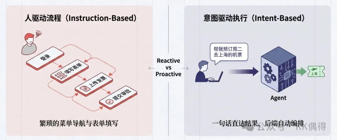 核心洞察: 以前是“人驱动流程”,现在变成了“意图驱动执行”。