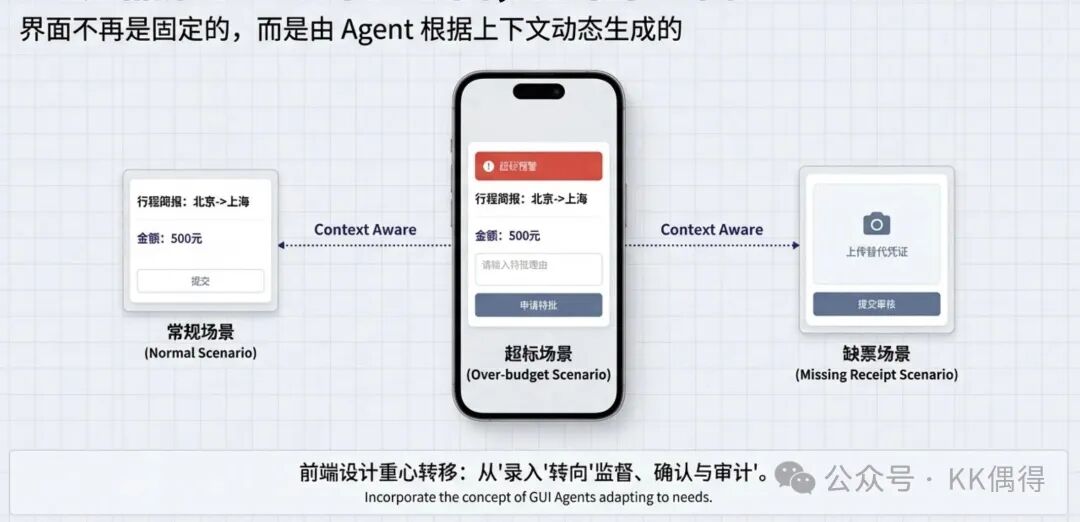 思考: 交互不再是死板的“千人一面”,而是“千事千面”。前端设计的重心,正在从“让人完成录入”,转向“让人更高效地完成监督、确认和审计”。