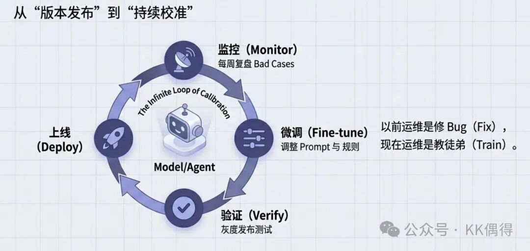 以前软件上线是终点,运维只负责修 Bug。 现在引入 AI 后,由于概率性的存在,上线只是“调教”的起点。