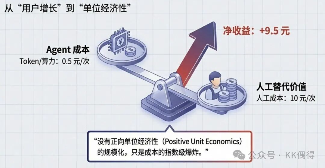 思考: 从追求“规模用户增长”,转向追求“规模化正收益”。只有当“单位任务净收益”跑通时,Agent 的规模化才有意义。
