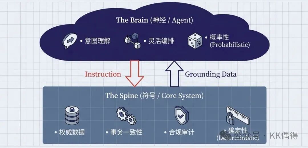 过去我们将交互、流程、规则、数据都封装在一个应用系统里。 现在,架构正在走向“两层协同”:前台灵活编排,后台严守底线。
