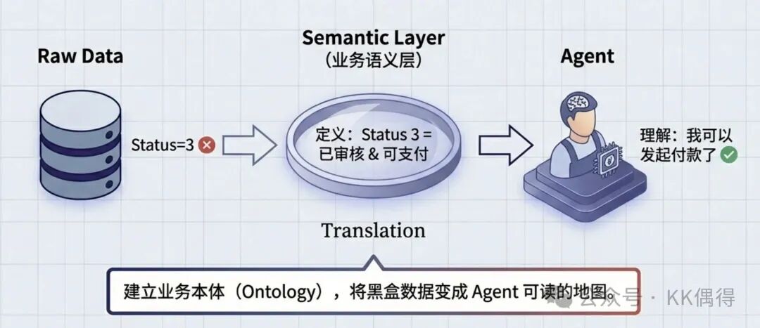 - 现在:除了字段,还必须定义语义层——“当订单状态为已审核,且合规校验通过时,才允许触发付款动作”。