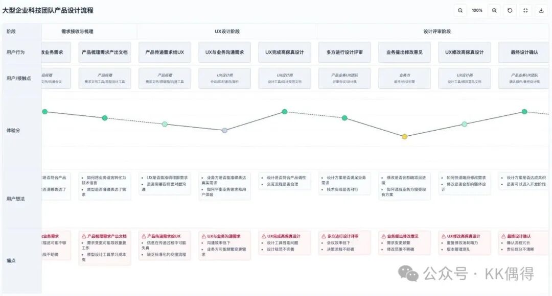 产品经理接到需求,埋头输出厚重的PRD和简单的线框图;然后将“接力棒”传给 UX,UX 再去消化、沟通、产出高保真;最后在评审会上,业务和开发第一次看到“成品”的样子,往往会提出一堆修改意见……