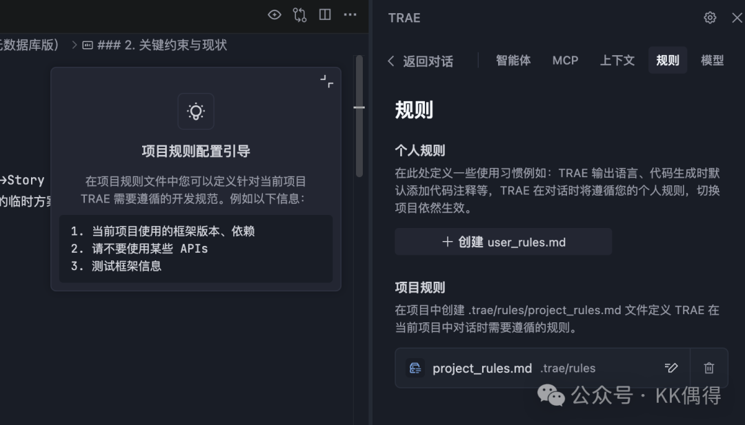 之前在 v0/Cursor/Augment 中都用到了 User Rules,但还没有用过 Project Rules——以前总是加个单独的 md 文件 来说明一些css,API 调用规则,但遵循性好像并不好——接下来可以试试Project Rules啦