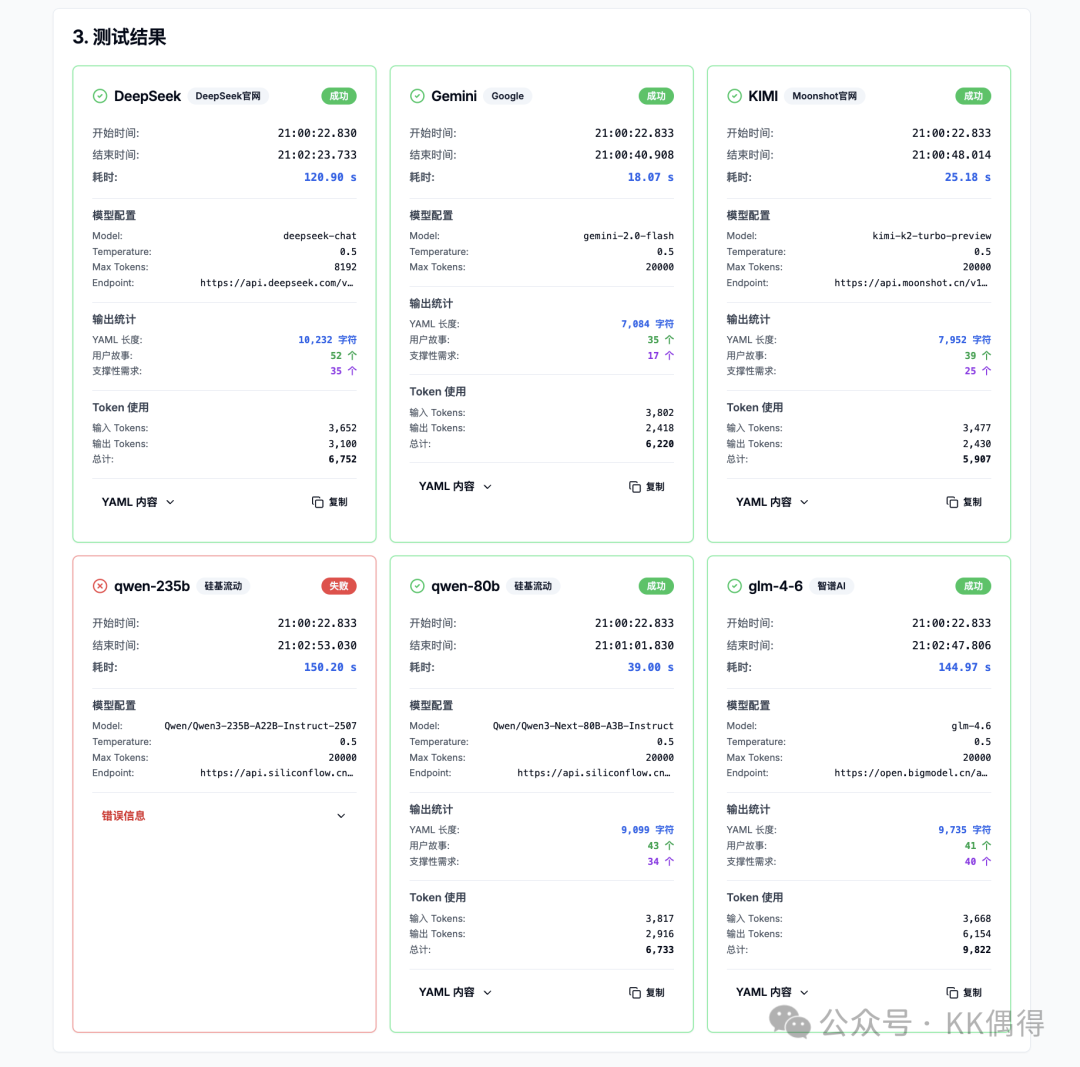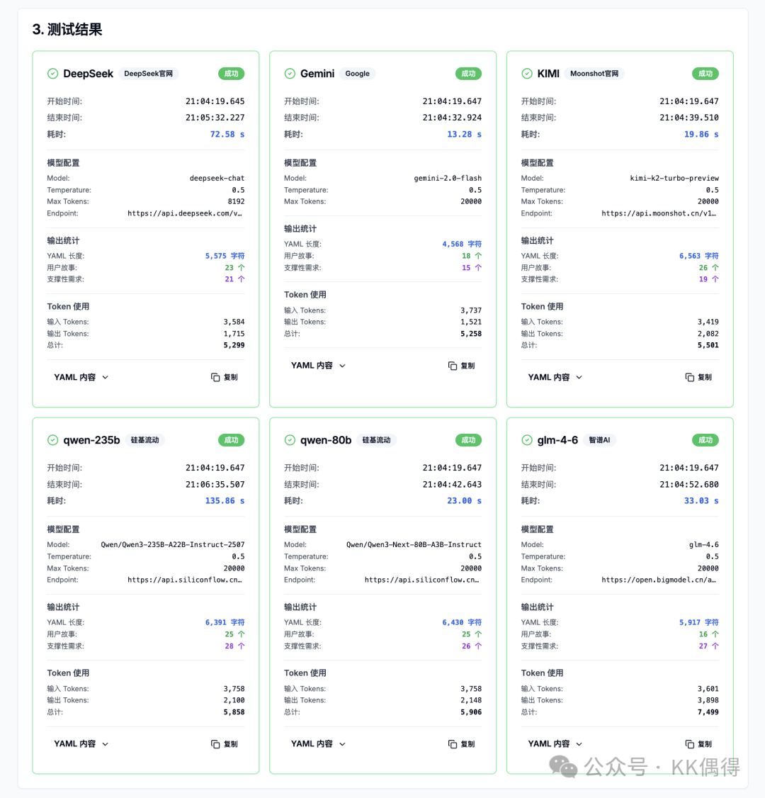 - ✅ DeepSeek 3.2、Gemini 2.0 Flash 和 Kimi K2 Turbo:测试过程中表现稳定,未出现失败情况